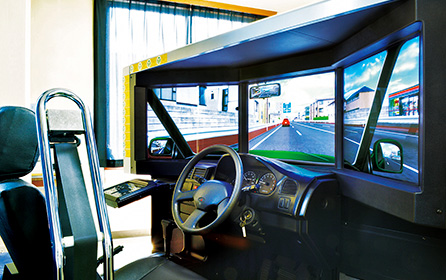 ドライビング・シミュレーターを用いて、危険の予測・回避の教習を行います。ゲームセンターでみた事あるって人、その程度ではありません(多分)。実車と同じ感覚で運転してみて下さい。